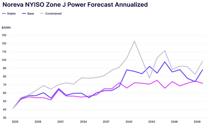 Capacity pricing, an increasingly important consideration in many US power markets, is available across all organized RTOs at unprecedented duration. Noreva’s proprietary trading view and rapid-response modeling techniques have been used to support long-term capacity risk management and project financing, and are available on both a subscription and a custom basis.