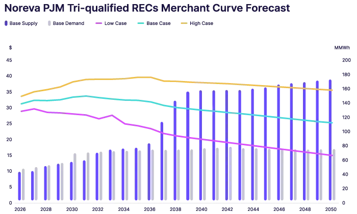Noreva provides bankable merchant curve forecasts for every major renewable energy credit (REC) market as part of its full-stack energy revenue solution.